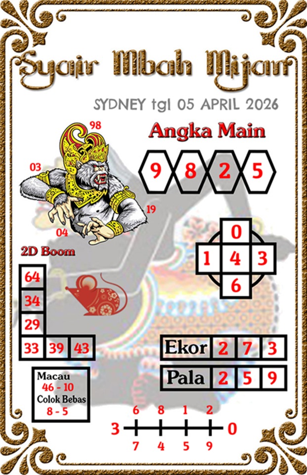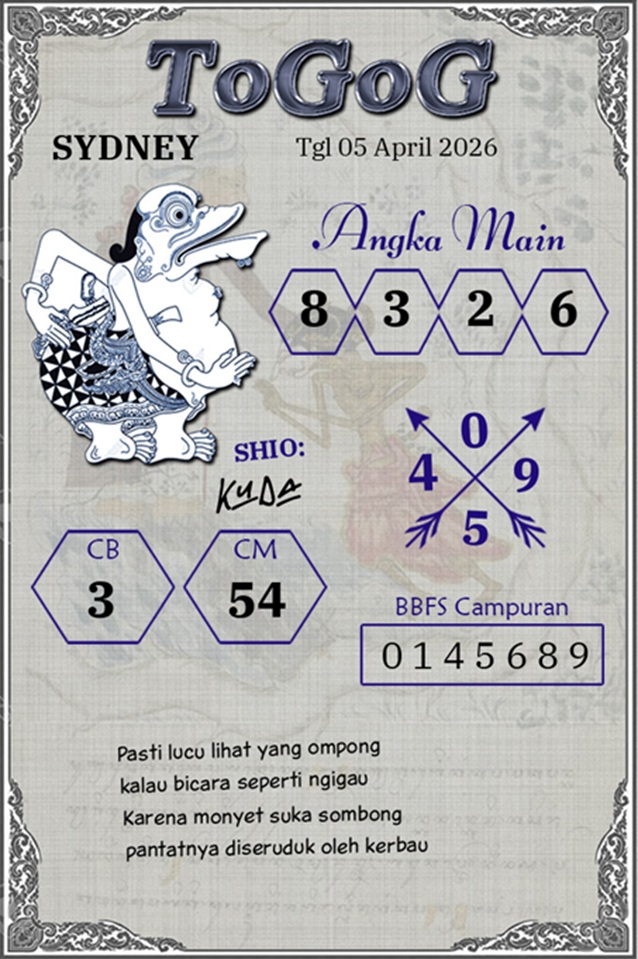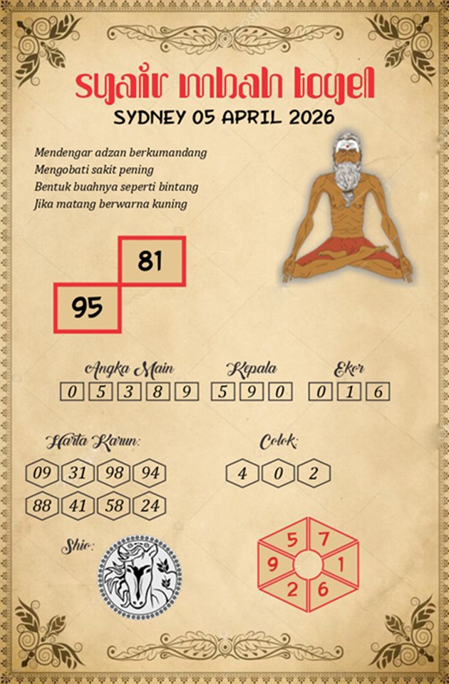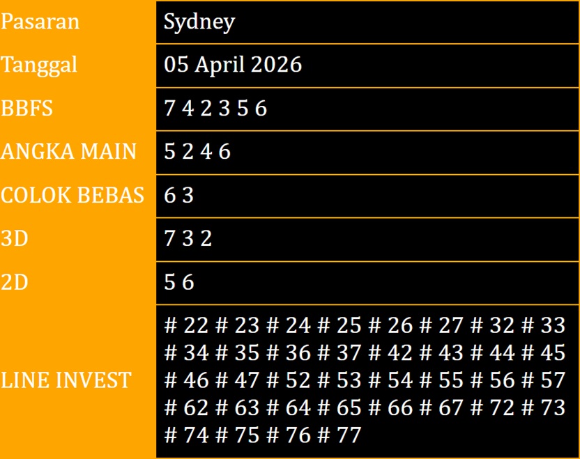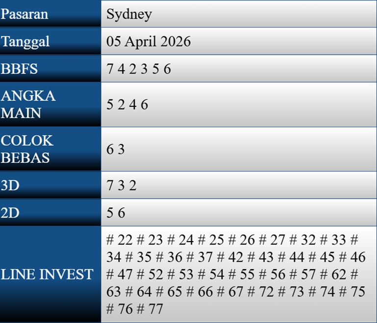 Syair Sydney Hari Ini Minggu 5 April 2026